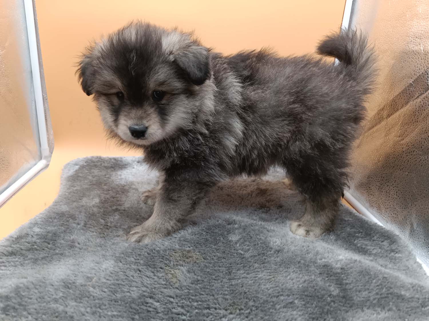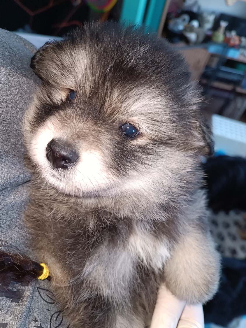 Noch ein kurzes Update bevor der neue Monat anfängt. Diese Woche war aufregend, zumindest für 2 der Zwerge. Letzten Sonntag hatte Hubble ein zugeklebtes Auge, passiert bei den Welpen hin und wieder mal, etwas warmes Wasser, vorsichtig reiben und er konnte wieder was sehen. Am Montag war das Auge wieder zugeklebt, sicherheitshalber bei der Tierärztin angerufen, sie meinte mal noch einen Tag warten und säubern, das war früh, am späten Nachmittag, waren dann beide Augen zu, also wieder Tierärztin angerufen und Termin für den nächsten früh bekommen. Wenn ich zur Tierärztin mit einen Welpen muss, nehme ich in der Regel einen zweiten zum Vergleichen mit - Hubbles Partner war Helix. Die beiden haben die erste Autofahrt (circa 20min je Strecke) souverän gemeistert. Bei der Tierärztin stellte sich dann bei Hubble eine leichte Bindehautentzündung heraus. Im Video sieht man ja manchmal wie Hexe die Welpe säubert und die Tierärztin vermutet, dass Hexe dabei etwas in seine Augen gerieben hat. Es gab darauf hin für Hubble Augentropfen und bereits zwei Tage später war alles wieder normal, ich hab dann wie verordnet die Augentropfen noch drei Tage weiter gegeben.