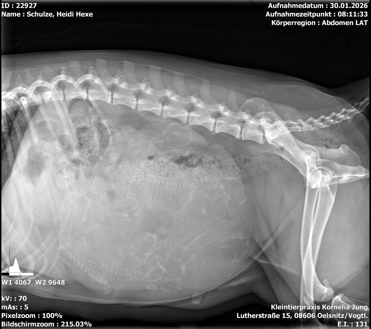 Und ja in dem Röntgenbild, der Knochensalat müsste 6 Welpen ergeben.