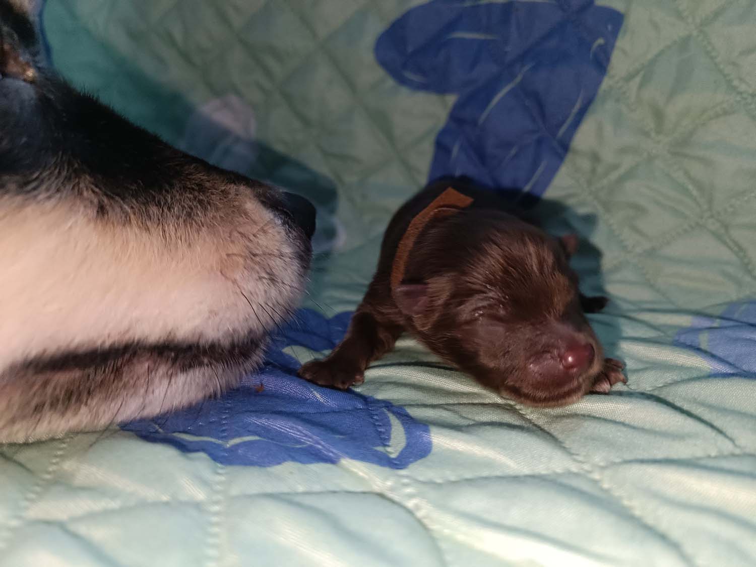 Kiwi hat heute 4 Welpen das Leben geschenkt, leider eine Woche zu früh.