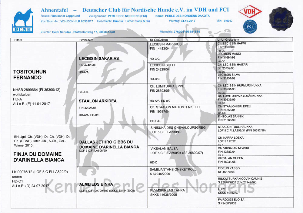 Zuchtbuchnummer:VDH/DCNH LK 00305/17