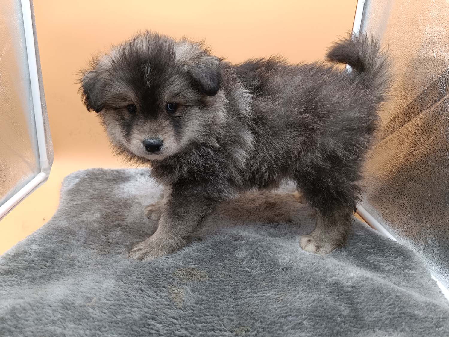 Noch ein kurzes Update bevor der neue Monat anfängt. Diese Woche war aufregend, zumindest für 2 der Zwerge. Letzten Sonntag hatte Hubble ein zugeklebtes Auge, passiert bei den Welpen hin und wieder mal, etwas warmes Wasser, vorsichtig reiben und er konnte wieder was sehen. Am Montag war das Auge wieder zugeklebt, sicherheitshalber bei der Tierärztin angerufen, sie meinte mal noch einen Tag warten und säubern, das war früh, am späten Nachmittag, waren dann beide Augen zu, also wieder Tierärztin angerufen und Termin für den nächsten früh bekommen. Wenn ich zur Tierärztin mit einen Welpen muss, nehme ich in der Regel einen zweiten zum Vergleichen mit - Hubbles Partner war Helix. Die beiden haben die erste Autofahrt (circa 20min je Strecke) souverän gemeistert. Bei der Tierärztin stellte sich dann bei Hubble eine leichte Bindehautentzündung heraus. Im Video sieht man ja manchmal wie Hexe die Welpe säubert und die Tierärztin vermutet, dass Hexe dabei etwas in seine Augen gerieben hat. Es gab darauf hin für Hubble Augentropfen und bereits zwei Tage später war alles wieder normal, ich hab dann wie verordnet die Augentropfen noch drei Tage weiter gegeben.