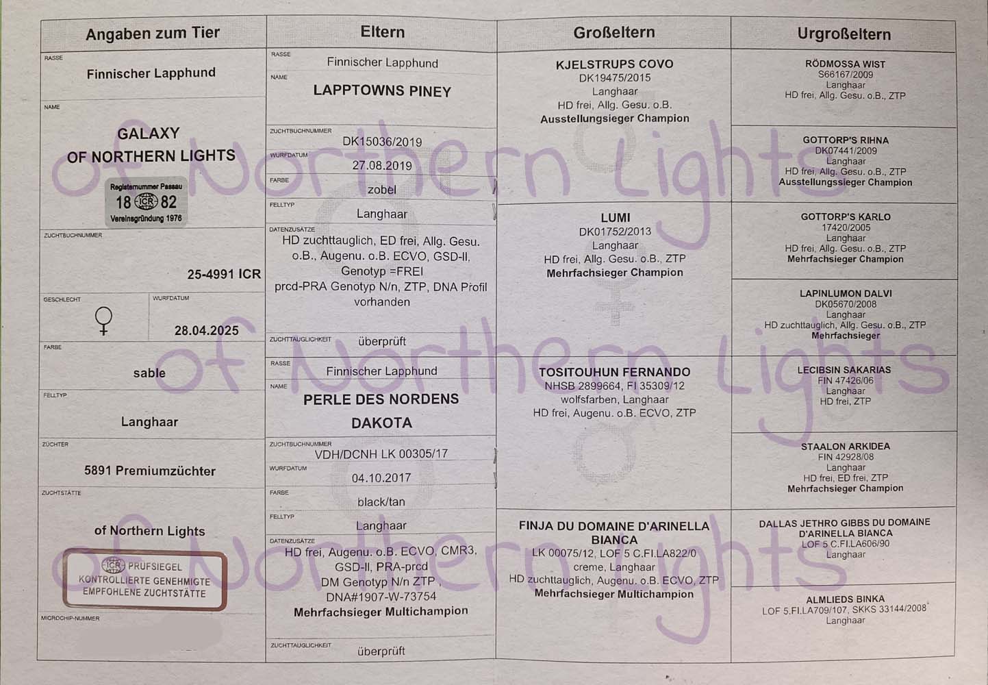 Zuchtbuchnummer: 25-4991 ICR